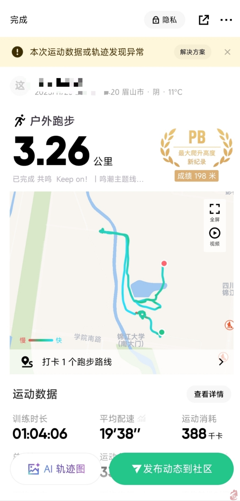 2025-11-22 川大锦江圈 #每日发帖 0 评论 1 喜欢 分享 布咕布咕 这个人很懒,还没有简介 查看TA的全部内容 +关注 拾趣校地 去发现更多有趣内容 微信扫码打开拾趣校地小程序 体验更多「拾趣校地」新功能 评论 0 我也来讲两句